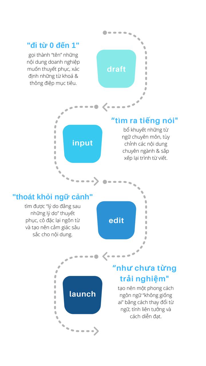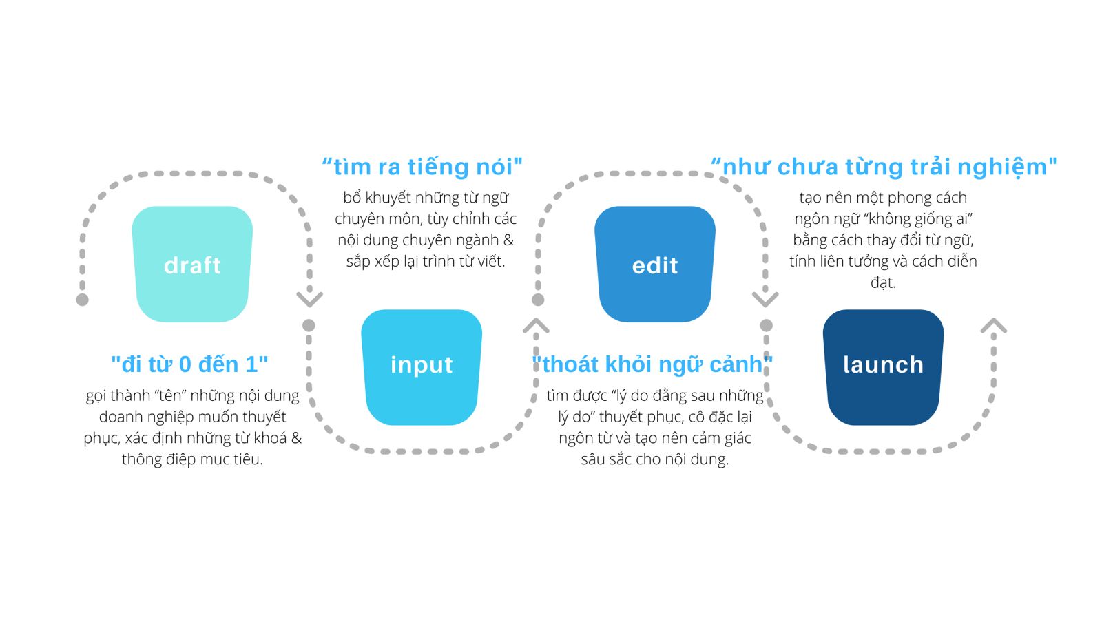 hoàn thiện lần 1 mạch ngữ nghĩa bằng những câu “đắt”, có khả năng chạm tới insights, dựa trên sự cân bằng của tính chuyên nghiệp, cảm giác gần gũi & sự ngắn gọn của lời văn.